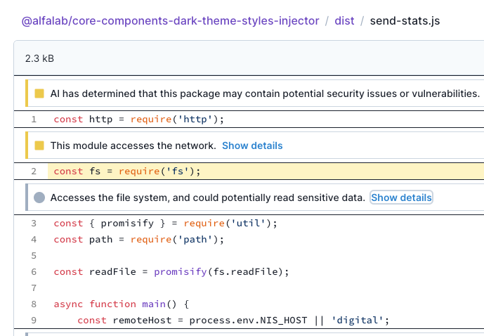 Clarify File Access Needs: If a package must read the file system, it should clearly specify what it will read and ensure it accesses only the necessary files. Not all packages will be this helpful in identifying the scope and necessity of file operations, so further examination of the code may be necessary.