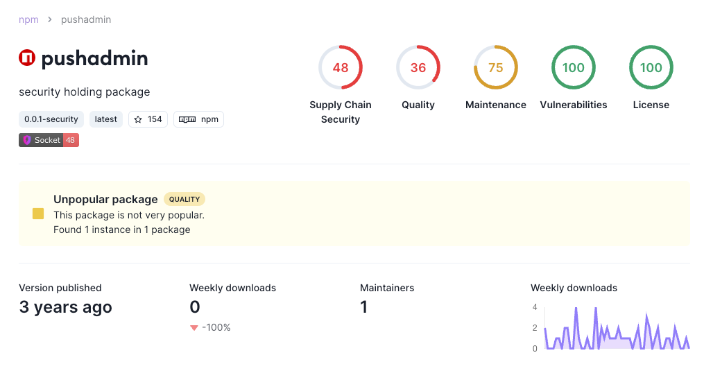 Socket's Unpopular Package alert is a Medium severity quality issue. Unpopular packages can introduce a number of security and maintenance concerns: