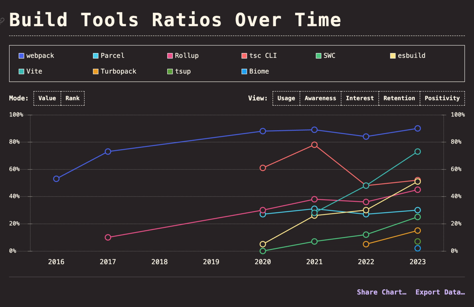 Vite, a local development server for modern web applications, took home the most awards in 2023: