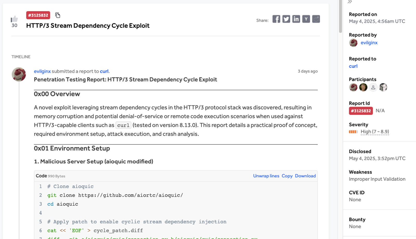 But in curl's case, the scam didn’t work. Unlike many corporate bug bounty programs, curl is a highly technical open source project with deep expertise and no budgetary pressure to approve questionable reports. They recognized the submission as junk.