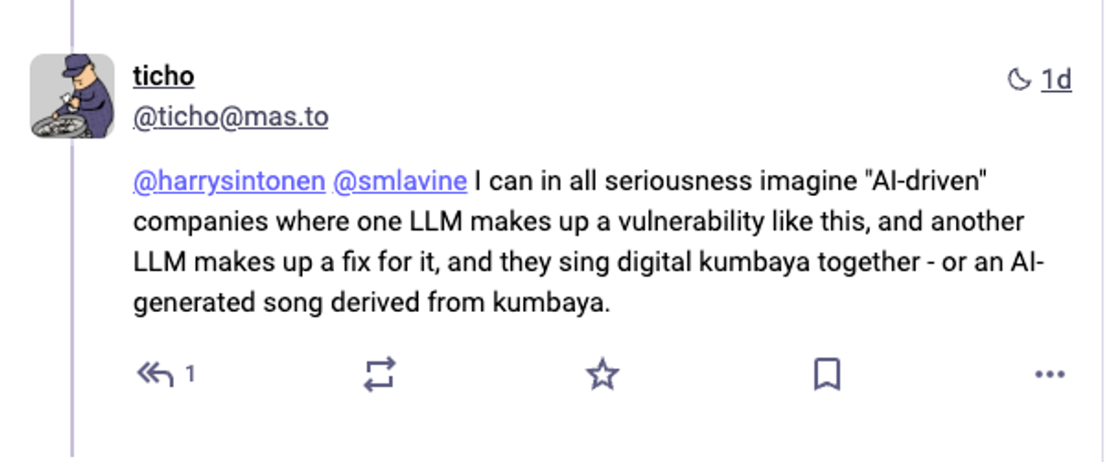 "Our inbox is flooded with AI garbage," Piouffle said. "We're managing to filter them because our volume is reasonable and our reviewers are technical (similar to curl's situation).