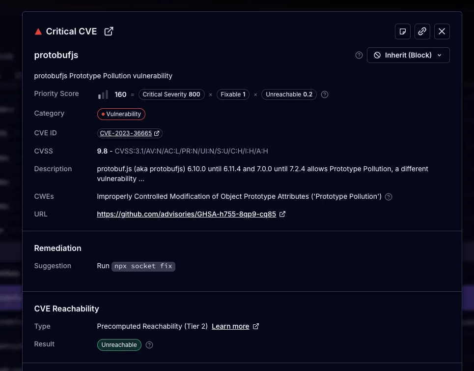 Precomputed reachability analysis is available now for all Socket Team and Enterprise customers. No configuration is needed—just run your scans as usual and see the results.