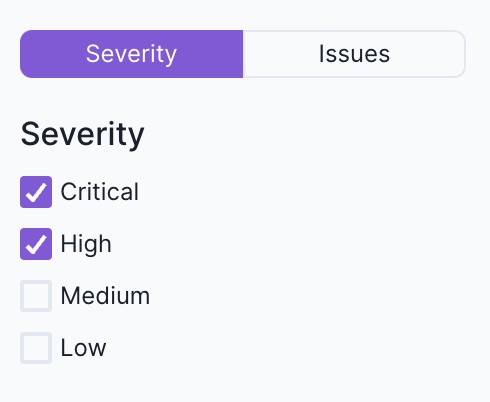You can filter to only issues of a given severity, for example “Critical” and “High” issues, as seen in the image above.