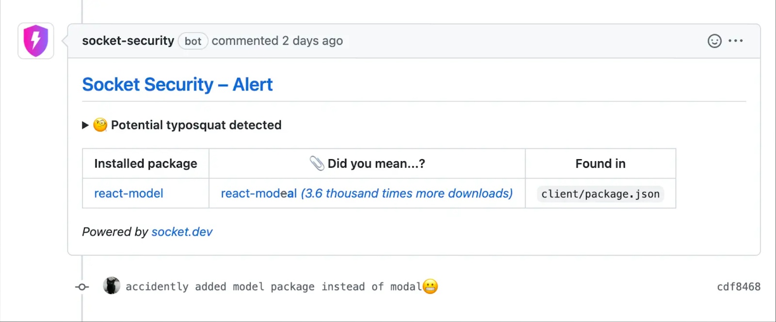 Security teams can enable Socket and let it work without development teams needing assistance to manage issues. The Socket GitHub integration communicates security information directly to developers and helps them to resolve their own problems. Developers are empowered with security information directly where they can act on it. Socket enables developers to resolve security risks and security issues on their own.