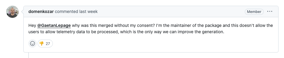 Contributors criticized the move, emphasizing that while Kožar, as an upstream maintainer, had the right to include telemetry, the Nixpkgs repository's purpose is not to foster commercial interests at the expense of transparency and consent. One contributor noted, "You may ship telemetry as an upstream project, but you are not the steward of Nixpkgs, and the purpose of Nixpkgs is not to foster your commercial interest."