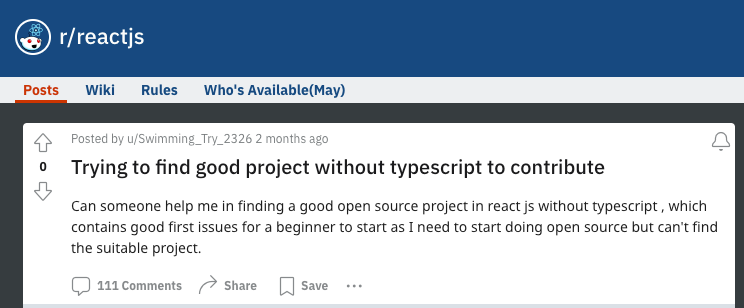 He posits that “most developers probably shouldn’t contribute to open source.” Part of Browne’s take was inspired by a post on the reactjs subreddit where someone asked for a good open source project that doesn’t require Typescript, as they “need to start doing open source but can’t find the suitable project.”