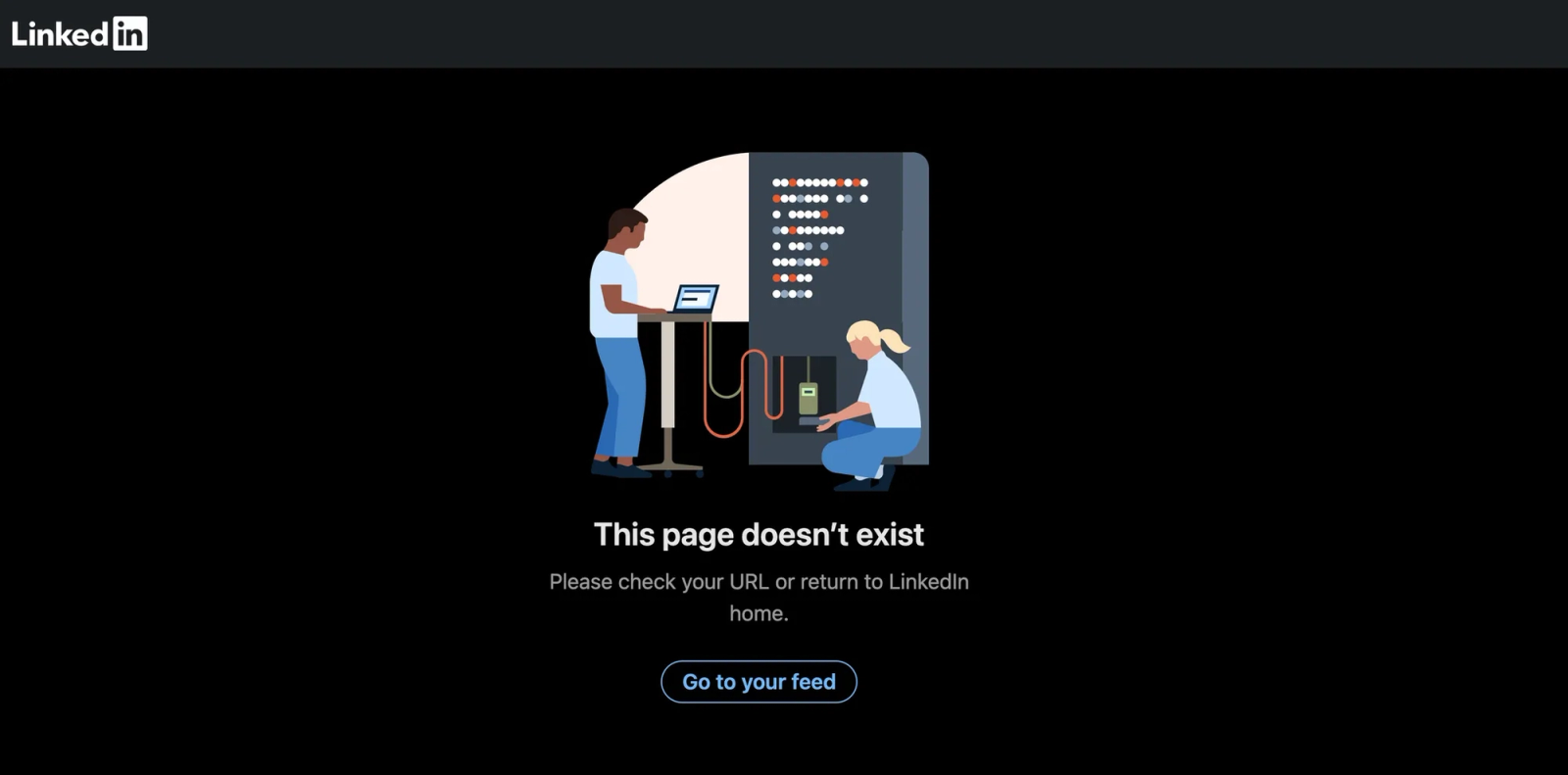 Fraudulent candidate’s cited LinkedIn profile resolves to “This page doesn’t exist”, confirming a nonfunctional link and a strong screening red flag.