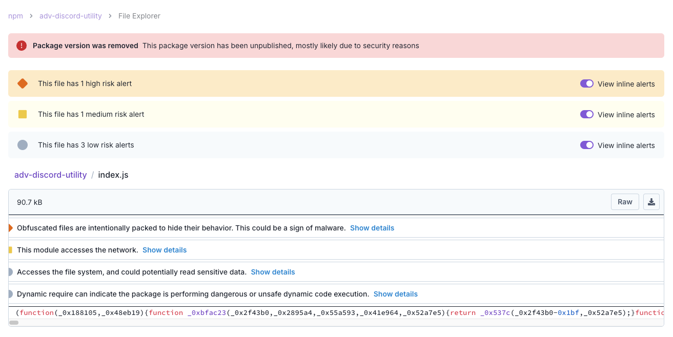 Socket sees a steady stream of these types of low-effort attacks that are hidden behind obfuscated code in malicious packages uploaded to open source registries. It's often buried within packages designed to look legitimate, making it easy for busy developers to unknowingly introduce malicious code into their projects.