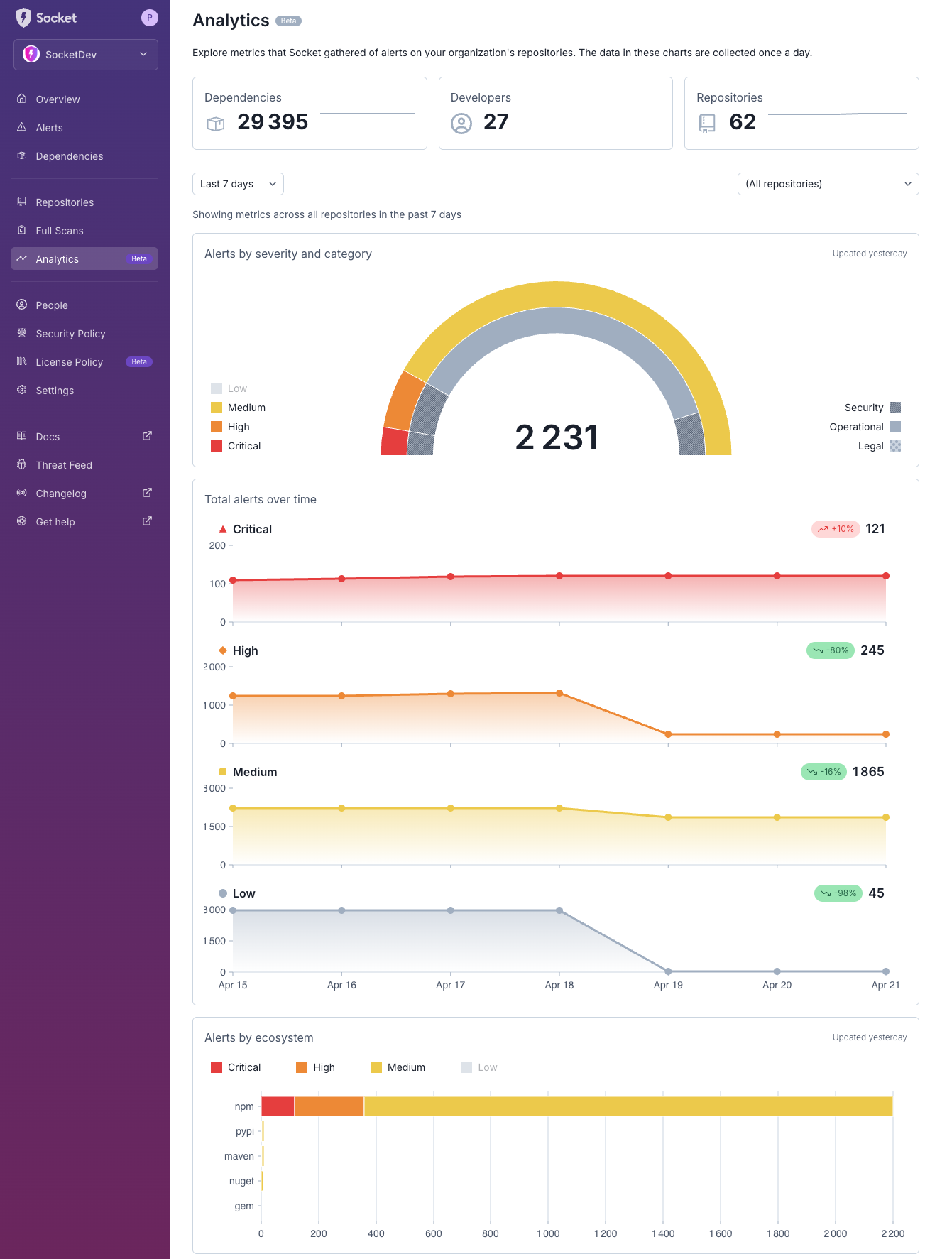 We’re excited to announce a powerful new capability in Socket: historical data and enhanced analytics. Until now, Socket has focused on surfacing real-time supply chain risks in your code. But understanding how those risks evolve over time is just as important (especially for teams managing complex, fast-moving codebases).