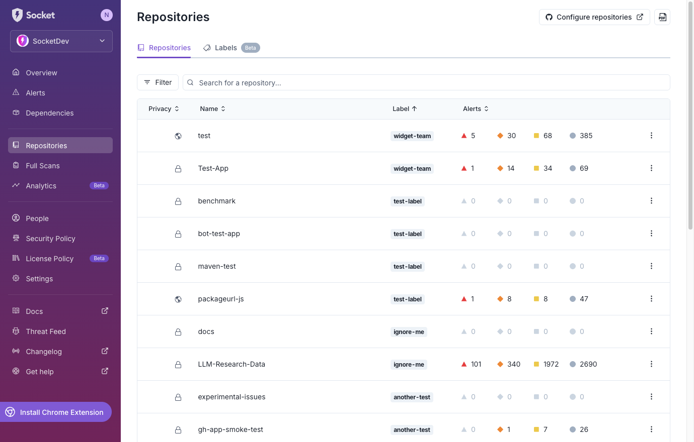 A common request from Socket customers has been to have a better way to organize repositories and apply repository-specific security policies.