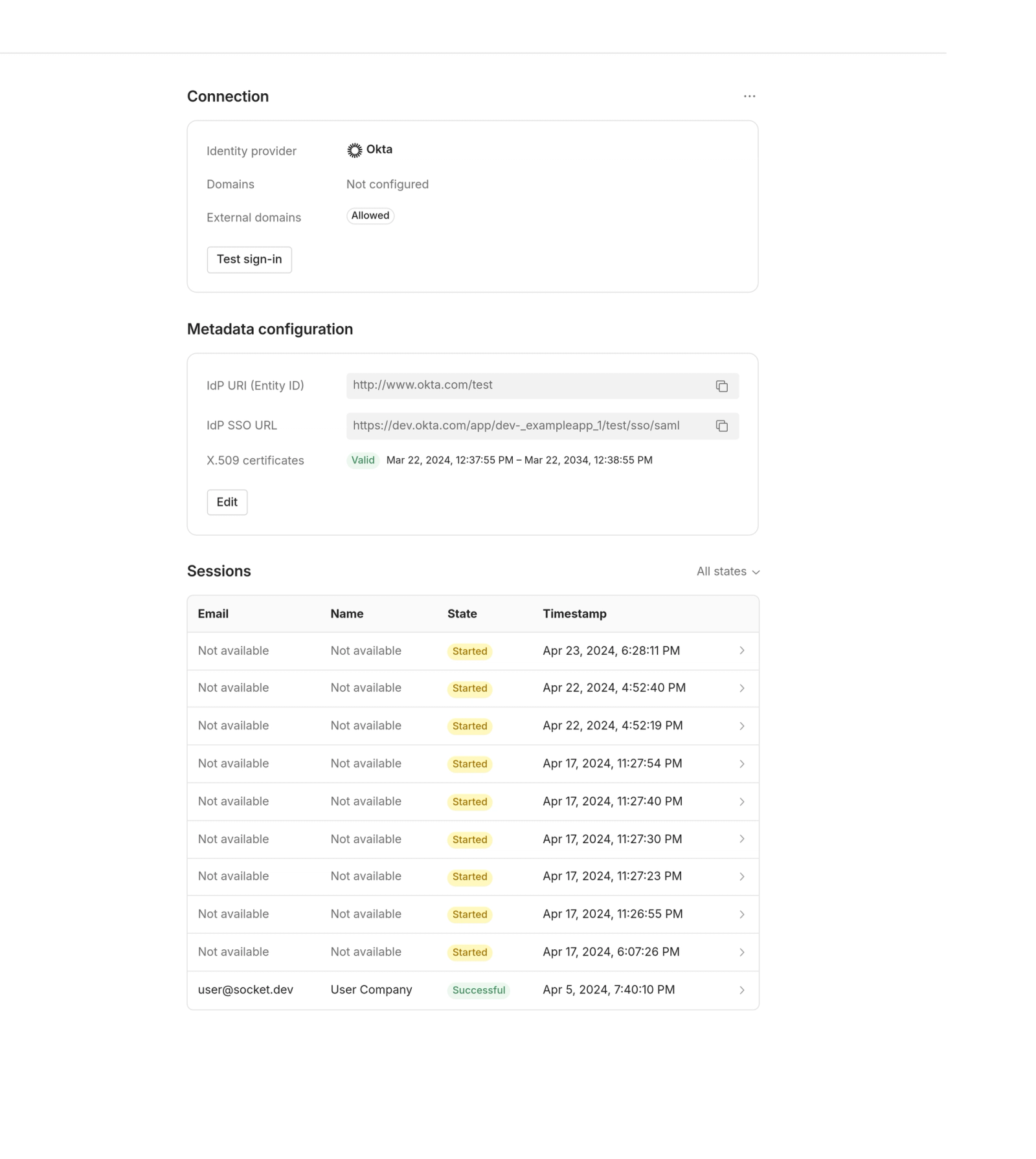 For those new to SSO, WorkOS provides a detailed step-by-step tutorial to guide you through the configuration process. Setting up SSO with Socket is designed to be a hassle-free experience, ensuring you can get up and running quickly without additional IT overhead.