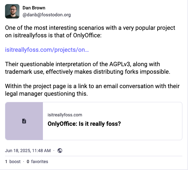 A new resource, isitreallyfoss.com, has launched to help users determine whether software projects are truly Free and Open Source Software (FOSS) as advertised. Created by UK-based developer Dan Brown, the site is a successor to his earlier Open Source Confusion Cases project, which documented cases of license or “open source” misrepresentation.