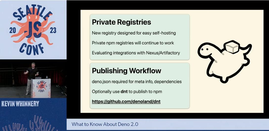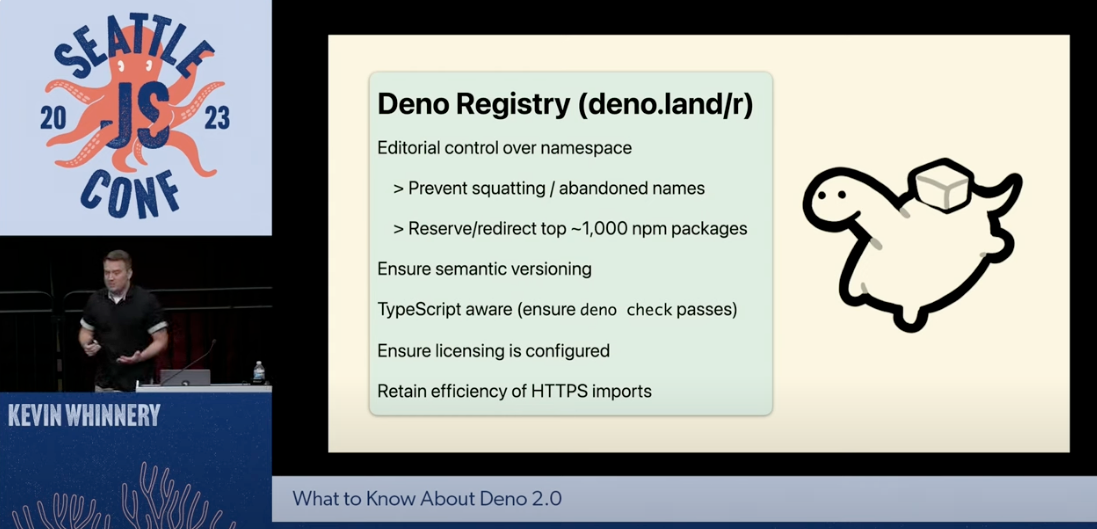 Kevin Whinnery, DevRel at Deno, explained the motivations behind creating a new package registry in his presentation on Deno 2.0:
