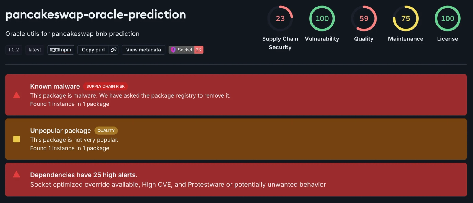 Socket flagged pancakeswap-oracle-prediction/index.js as malicious.