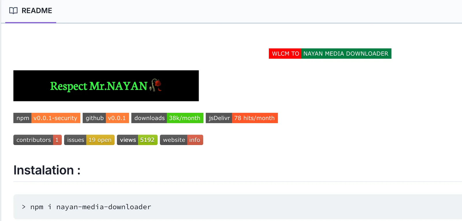Interestingly, nayan-video-downloader, the package being wrapped, had its own history of security concerns, having been previously flagged and removed from the npm registry for malicious behavior under the name nayan-media-downloader. The threat actor has now republished it under the name nayan-video-downloader . The connection between these packages became strikingly obvious when examining their documentation. Both packages share identical README files and package descriptions, word-for-word: "Fetch Url Downloads From Instagram & Facebook & TikTok & YouTube & Twitter & Google Drive & Pintarest & likee & threads". This exact duplication strongly suggests these packages are created by the same threat actor(s), now attempting to reintroduce their malicious code through a new package name.