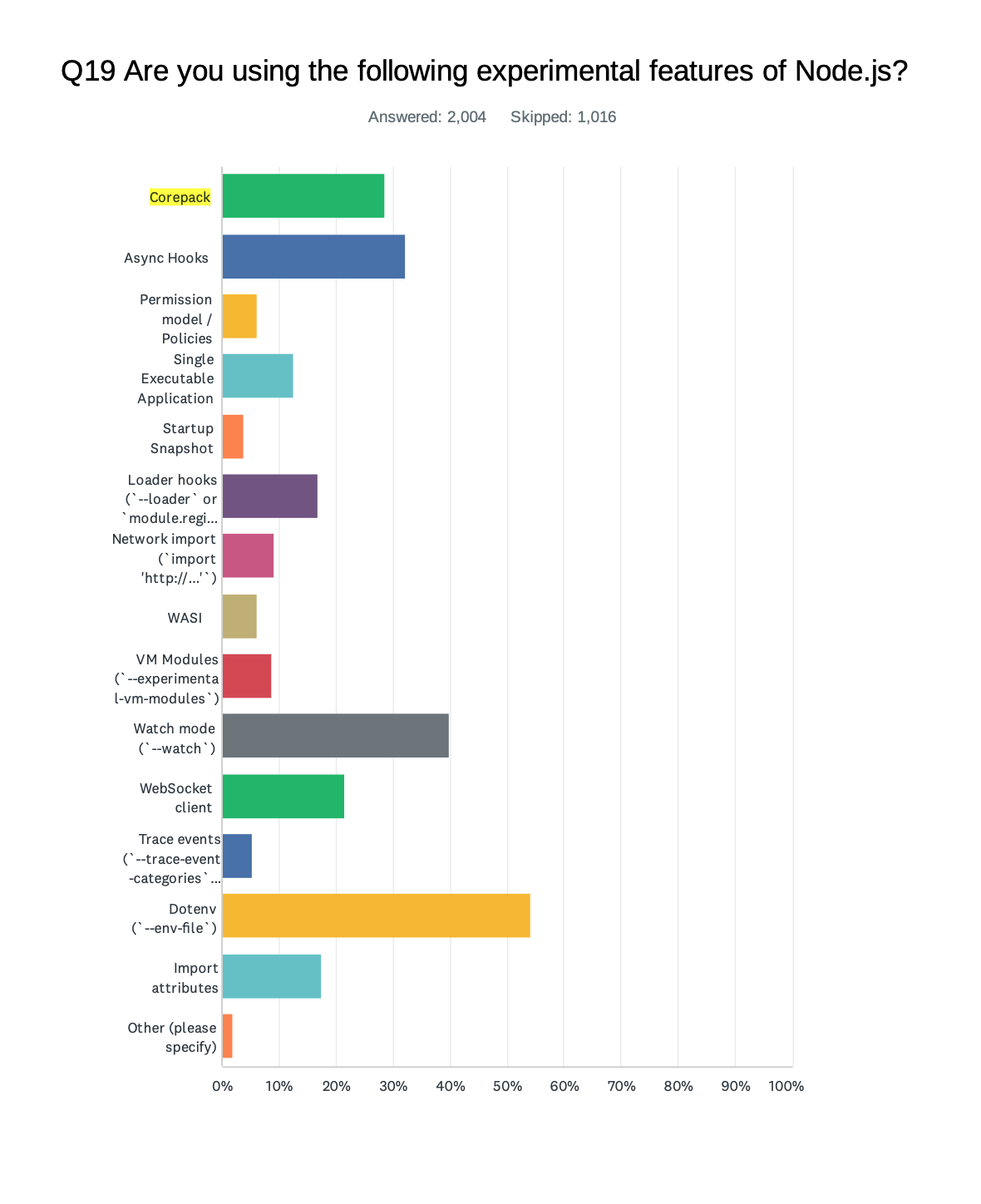 Several commenters on the PR noted the relative popularity of Corepack among experimental features of Node.js. TSC member Marco Ippolito shared data from the latest survey, saying it seems Corepack its “pretty popular:”