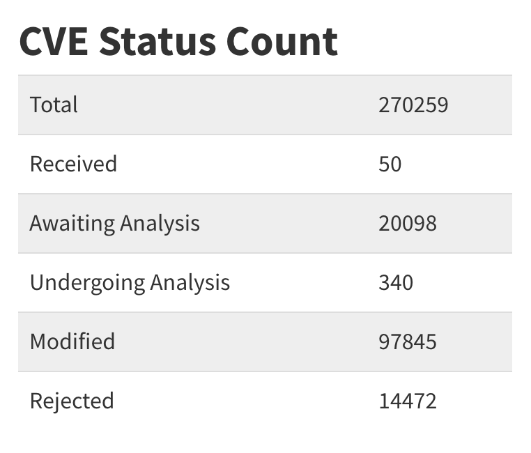 CVEs awaiting analysis by the NVD have broken the 20,000 mark, after the security community noticed its enrichment activity slowed to nearly a halt again last week. NIST failed to meet its self-imposed deadline of clearing the NVD's backlog by the end of the fiscal year. Meanwhile, CVE's awaiting analysis have increased 11% from ~18,000 in October.