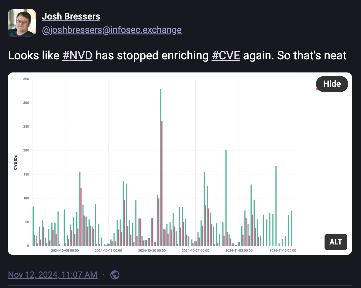 While the updates provide incremental improvements, some of these changes may introduce challenges and disruptions for tools relying on the NVD’s data. For security professionals, the message is clear: the NVD remains a critical resource, but its limitations and must be accounted for. Organizations should be supplementing NVD data with other sources while NIST continues to dig out from underneath the backlog of 20,000+ CVEs awaiting analysis.