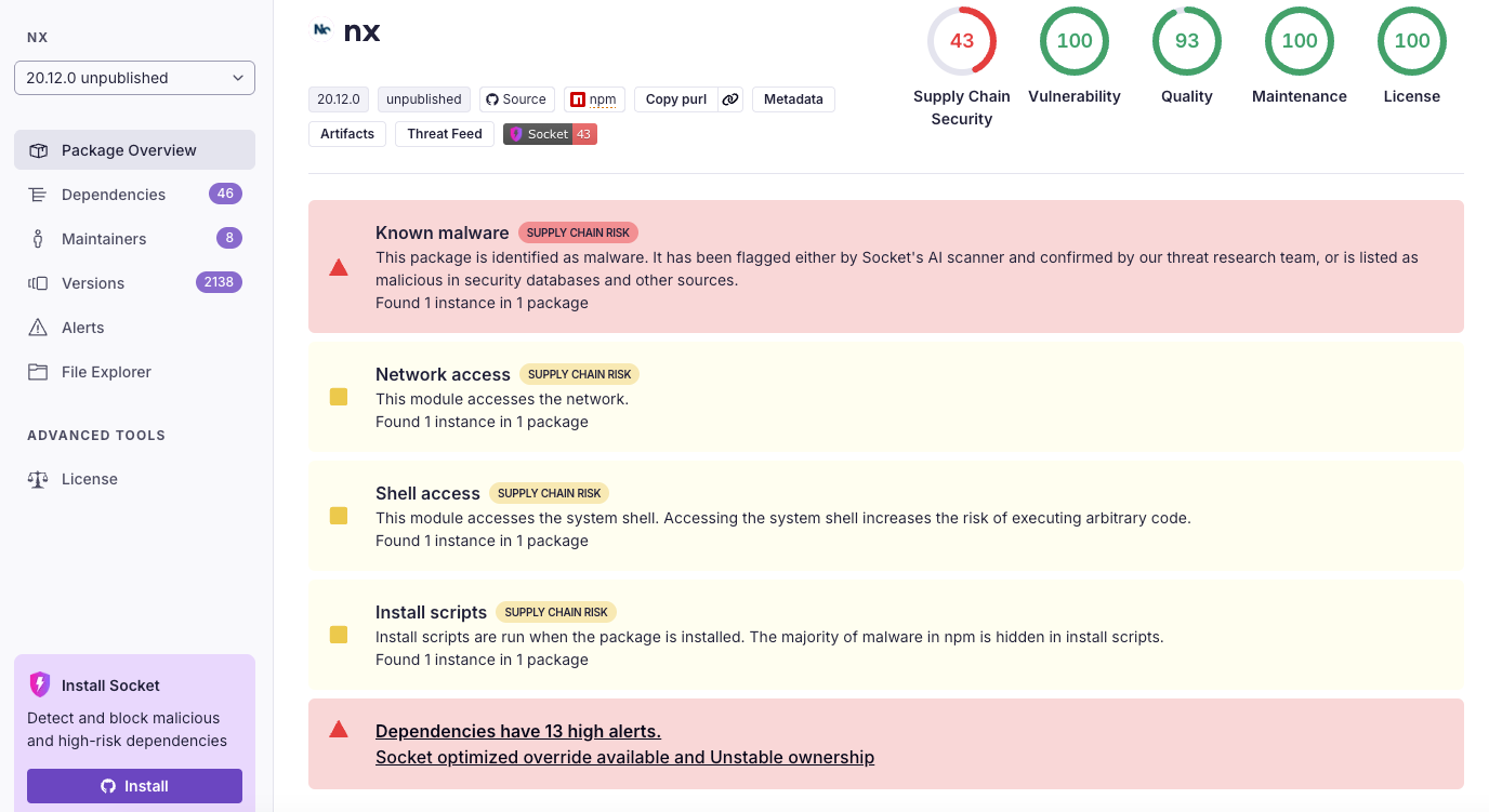 npm install that uses Socket’s AI scanner to block malicious packages at install time.Both tools are free and designed to catch exactly this type of attack before it can land in your environment.
