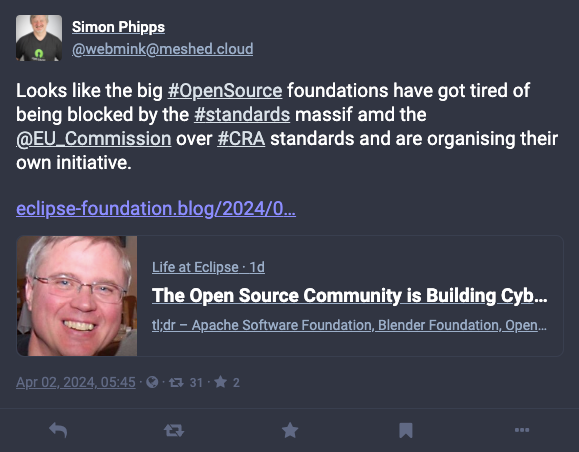OSI Standards director Simon Phipps theorizes that the participating foundations are frustrated with the slow progress of discussions with the EU Commission regarding the CRA standards, making it impossible for the open source community to contribute to the creation of those standards. This new initiative may be aimed at creating a set of best practices that meet the spirit of the CRA but are more tailored to the open source development model.