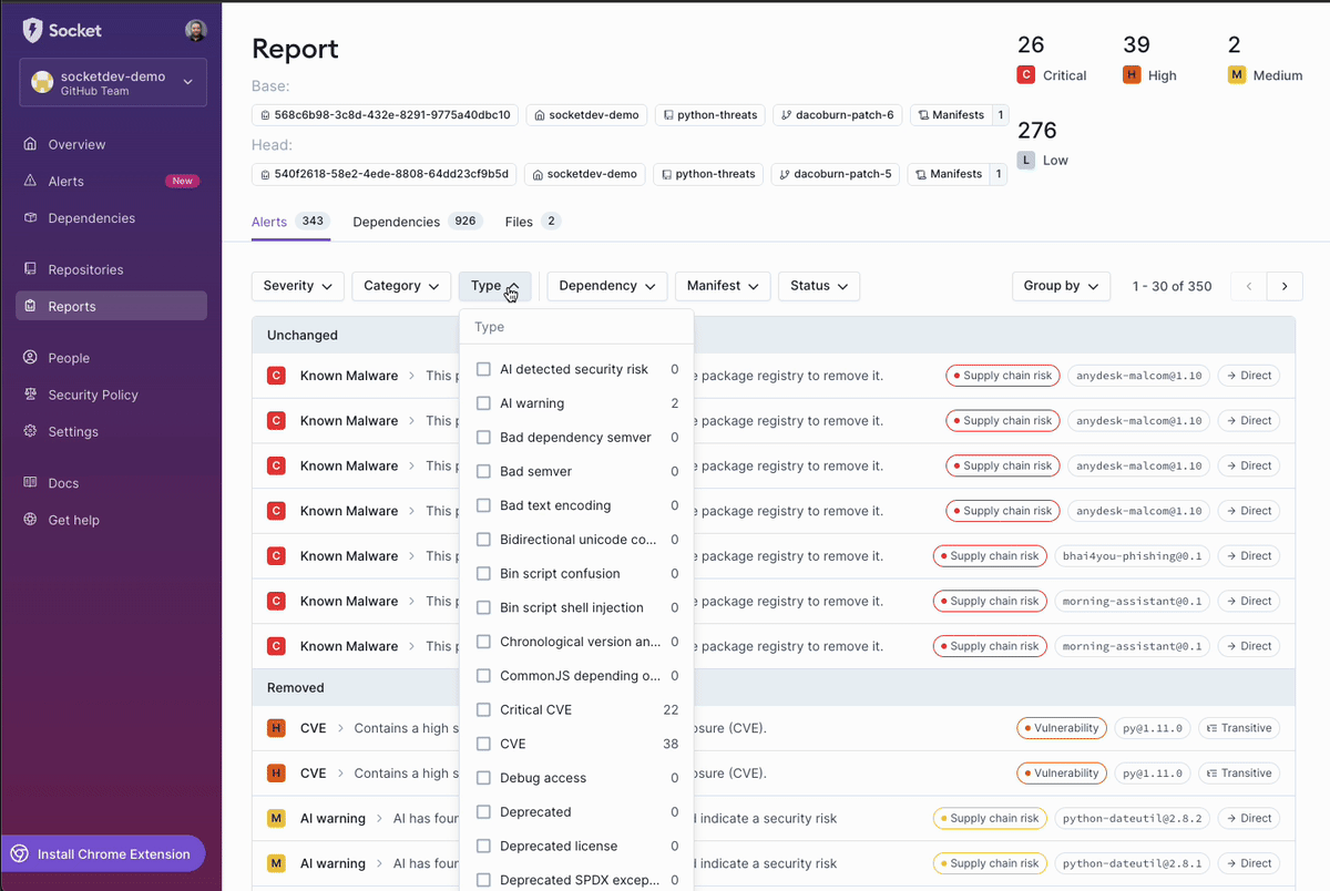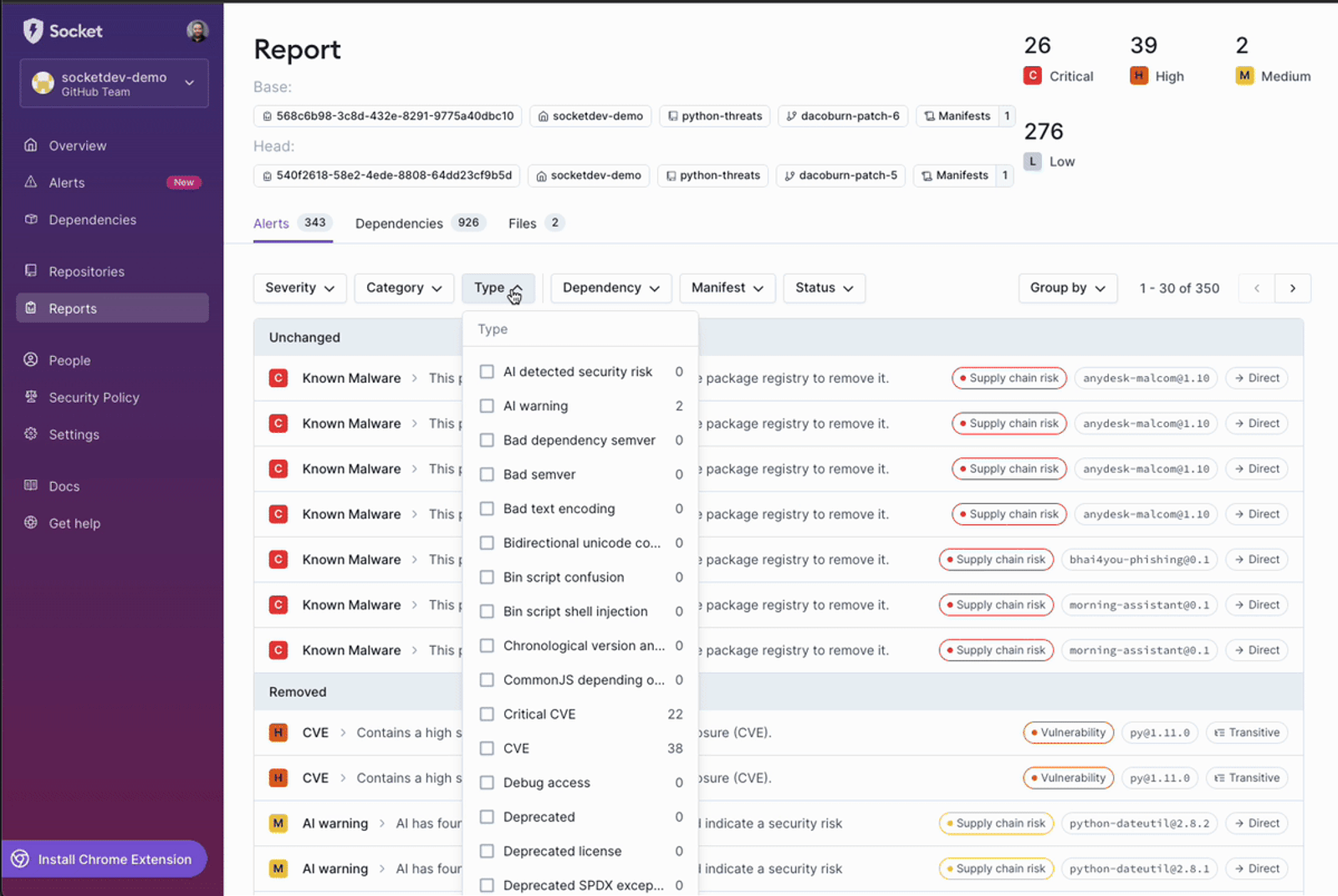 No changes are necessary for current users of the Socket for GitHub app to take advantage of the new diff reports, improved language support, and faster scan times.