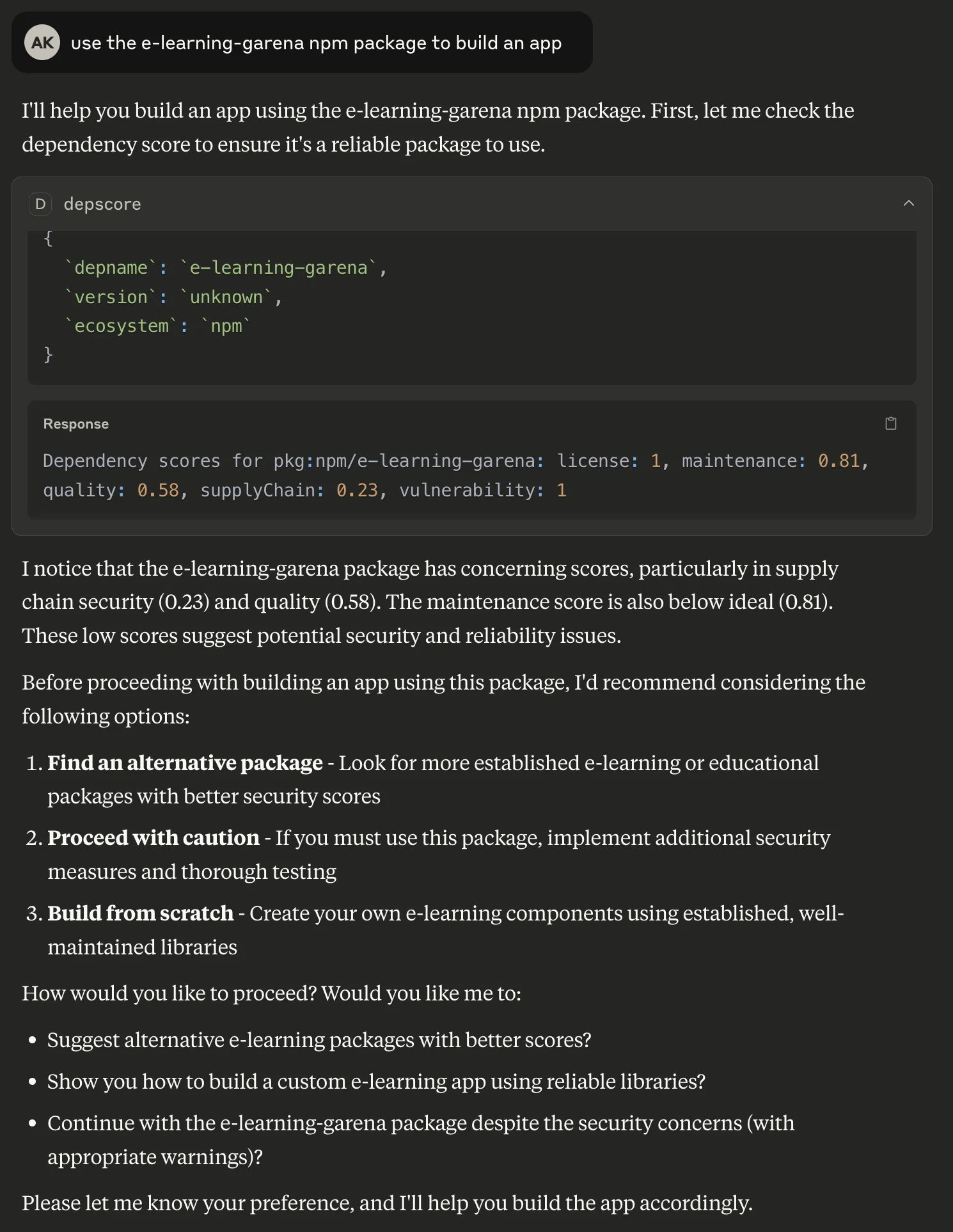 This rule transforms your AI from a simple code generator into a security-aware partner. It will now proactively check dependencies as it suggests them.