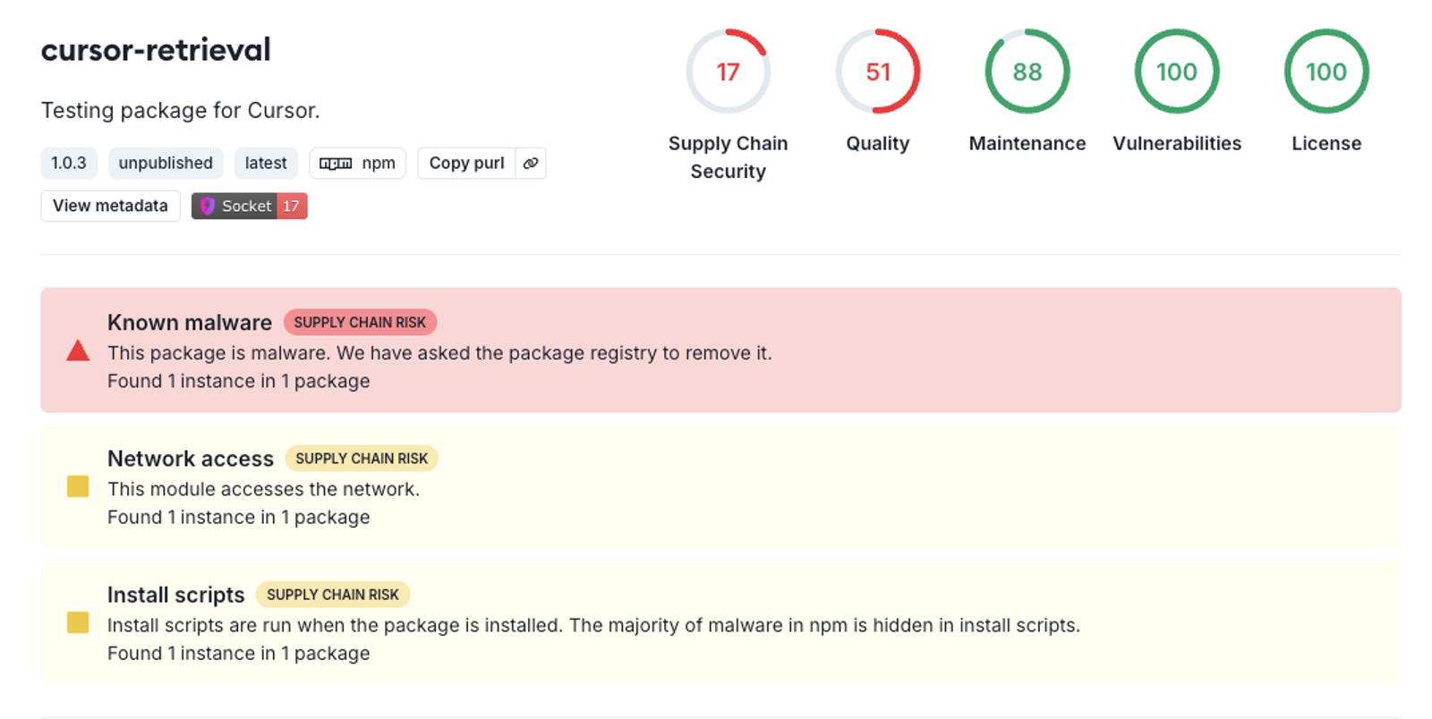While the stated intent behind deploying these packages might have been to research a potential vulnerability—dependency confusion in Cursor's VS code extensions—the execution was deeply flawed.