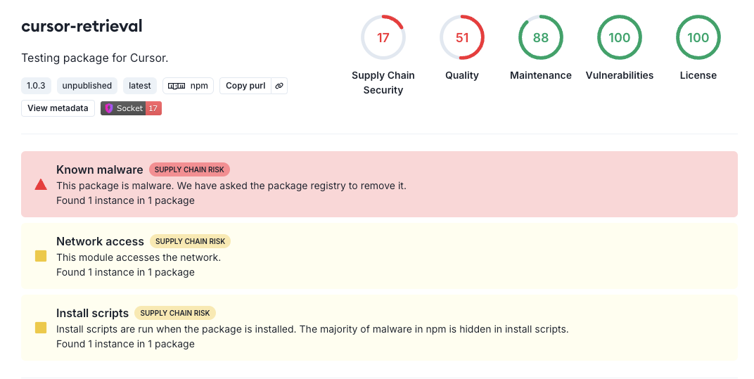 At Socket, our mission is to address these challenges with tools that prevent entire classes of supply chain attacks before they happen. By analyzing package behavior and prioritizing proactive security, we aim to make software development safer for everyone. Together, let’s work towards a security culture that protects the open source ecosystem, where ethical standards are as robust as the tools we build.
