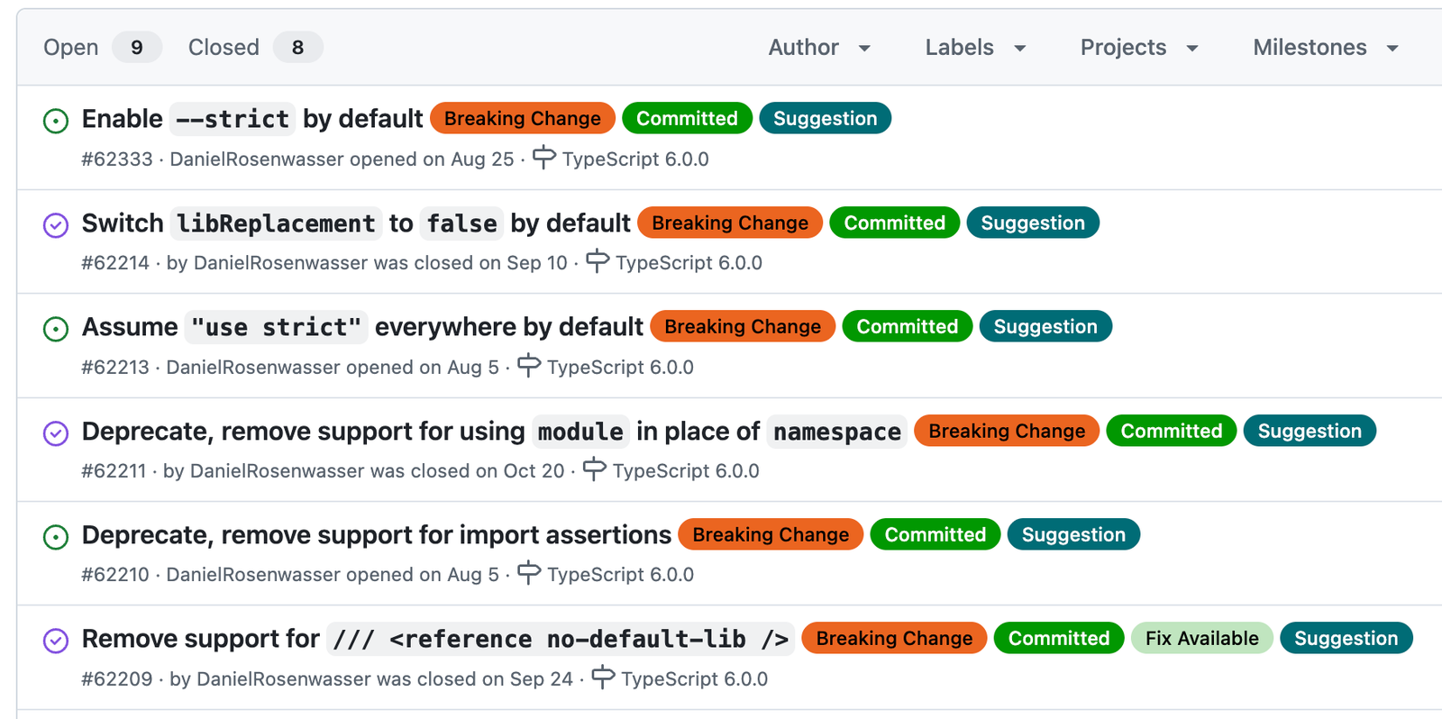In a progress update published yesterday, Daniel Rosenwasser, a Principal Product Manager on Microsoft’s TypeScript team, describes TypeScript 6.0 as a bridge between the 5.9 line and the upcoming 7.0 native toolchain. The team is not planning a TypeScript 6.1, though they may publish 6.0.x patches in specific high-severity cases.