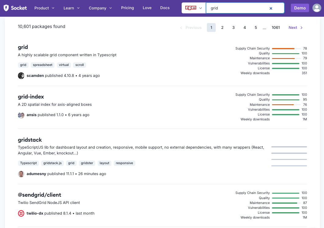 We’re excited to announce a small enhancement to our package search results pages. Weekly download counts are now displayed for each npm package when searching on Socket. This recently requested feature adds more context to search results, giving users a clearer picture of package popularity at a glance.