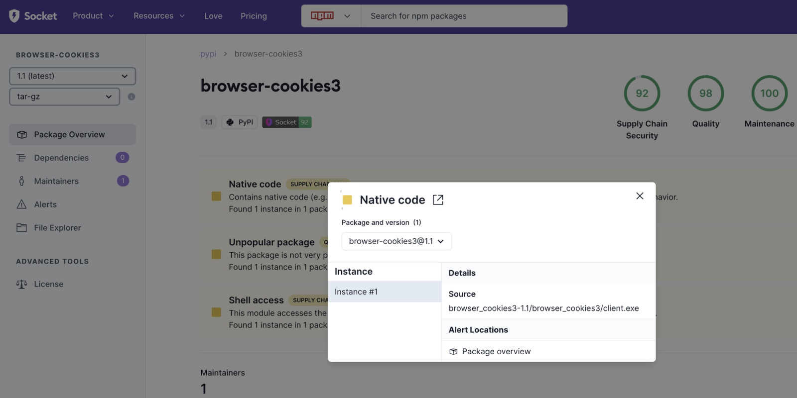 We have enhanced the "Native Code" alert to support multiple ecosystems beyond npm. Previously limited to detecting binding.gyp files for native add-ons in npm packages, the alert now scans for prebuilt binaries and ecosystem-specific files across various programming languages.