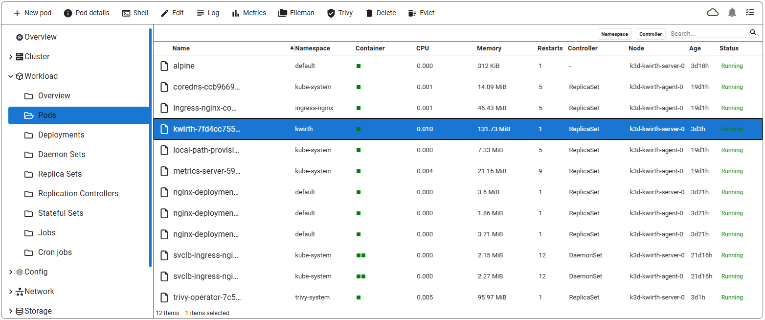 With RFM we have built a full Kubernetes manager (similar to Lens, HeadLamp or K9s), by using RFM as the base application object manager, like we show here: