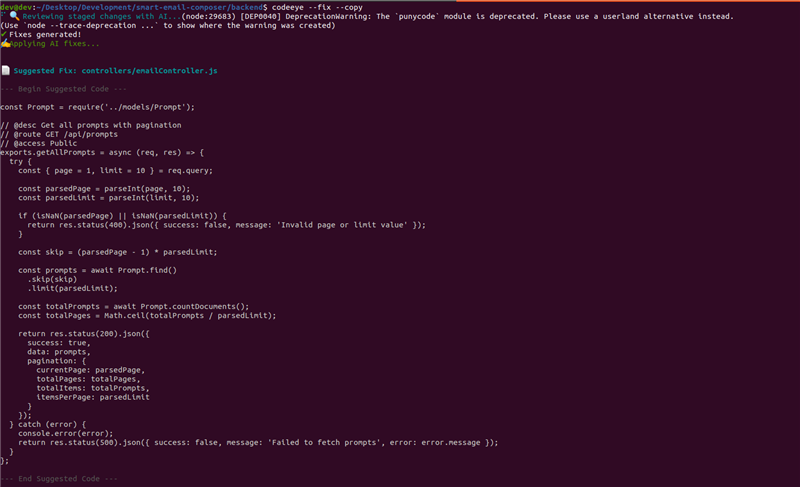 npx codeeye --fix
