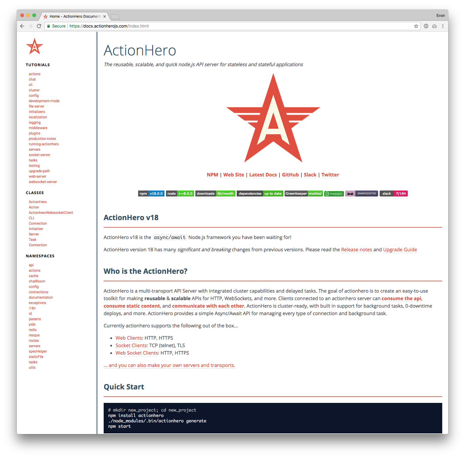 $ jsdoc entry-file.js -t path/to/docdash-actionhero