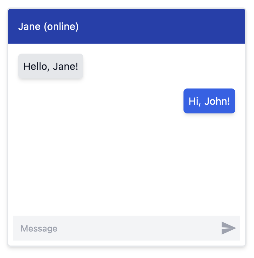 The following code example uses tailwind to style the chatbox, as shown in the image above: