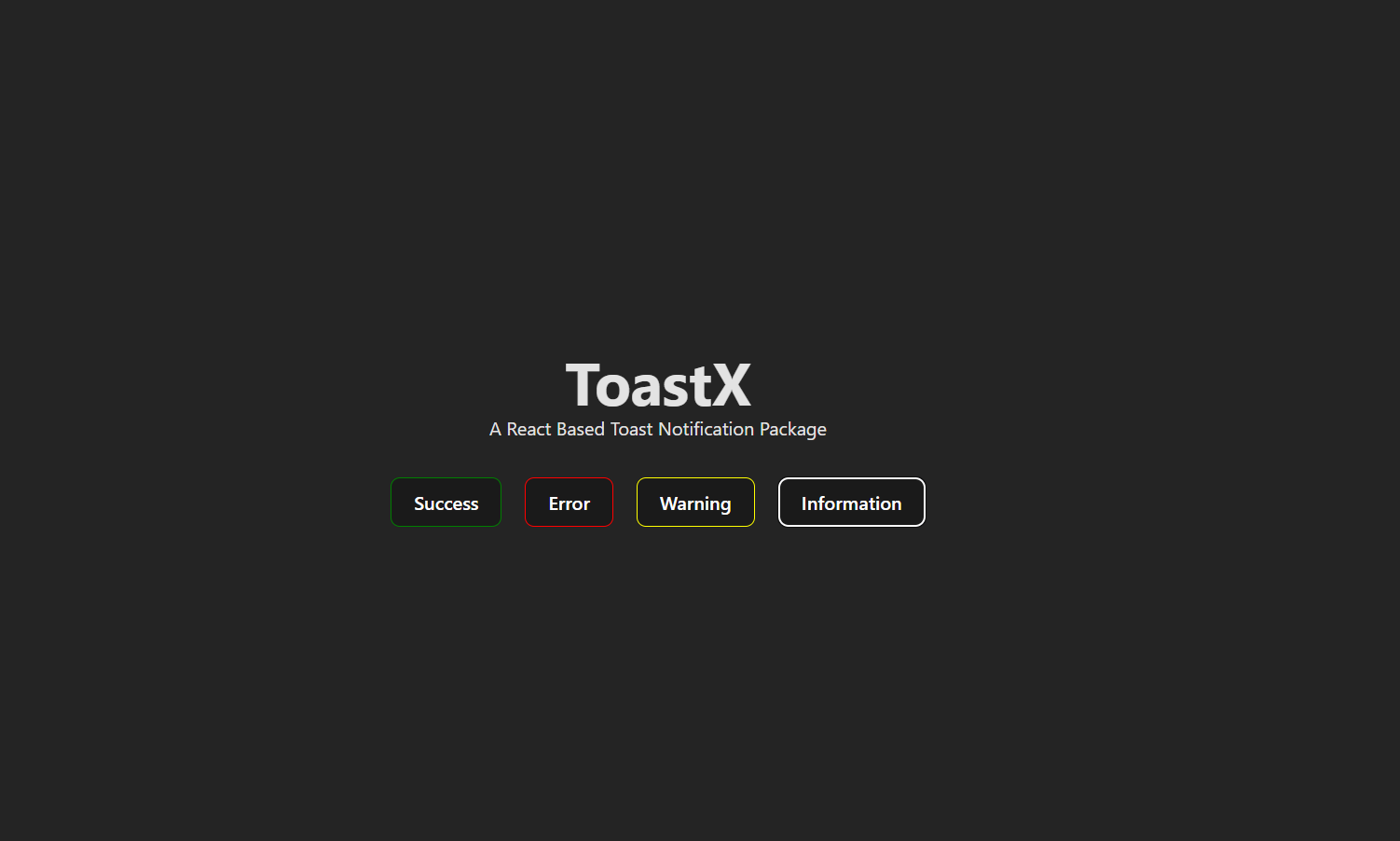 ToastX is a lightweight and highly customizable React toast notification package that provides visually appealing and responsive notifications with smooth animations.