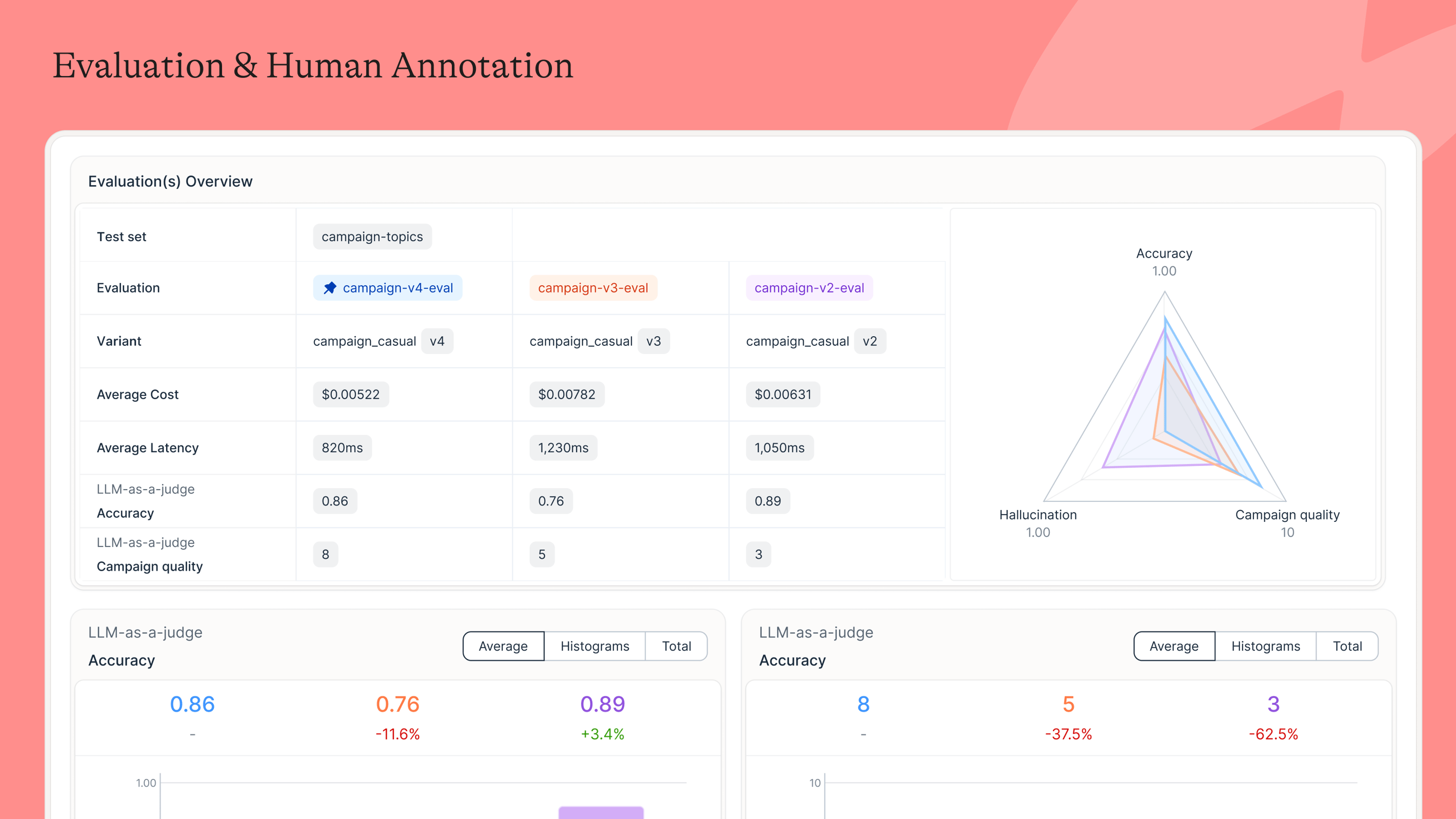 Evaluate your LLM applications systematically with both human and automated feedback.
