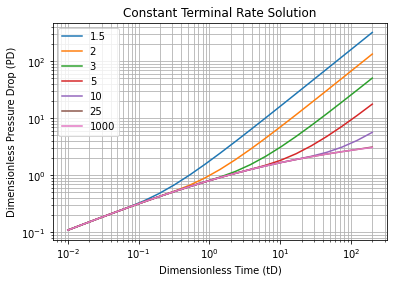 A set of dimensionless pressures for the constant terminal rate Van Everdingin & Hurst aquifer, along with an AQUTAB.INC export for use in ECLIPSE.