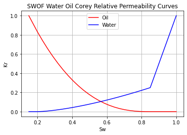 Or a set of Water-Oil relative permeability curves with the Corey method
